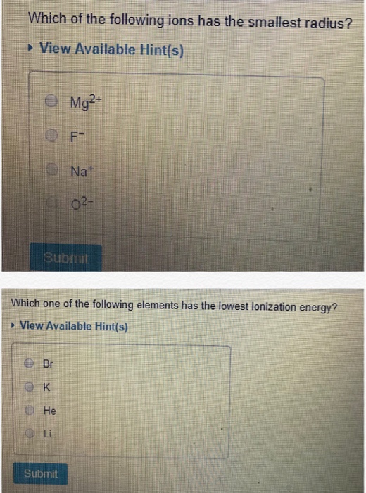 Solved Which Of The Following Ions Has The Smallest Radius Chegg Com